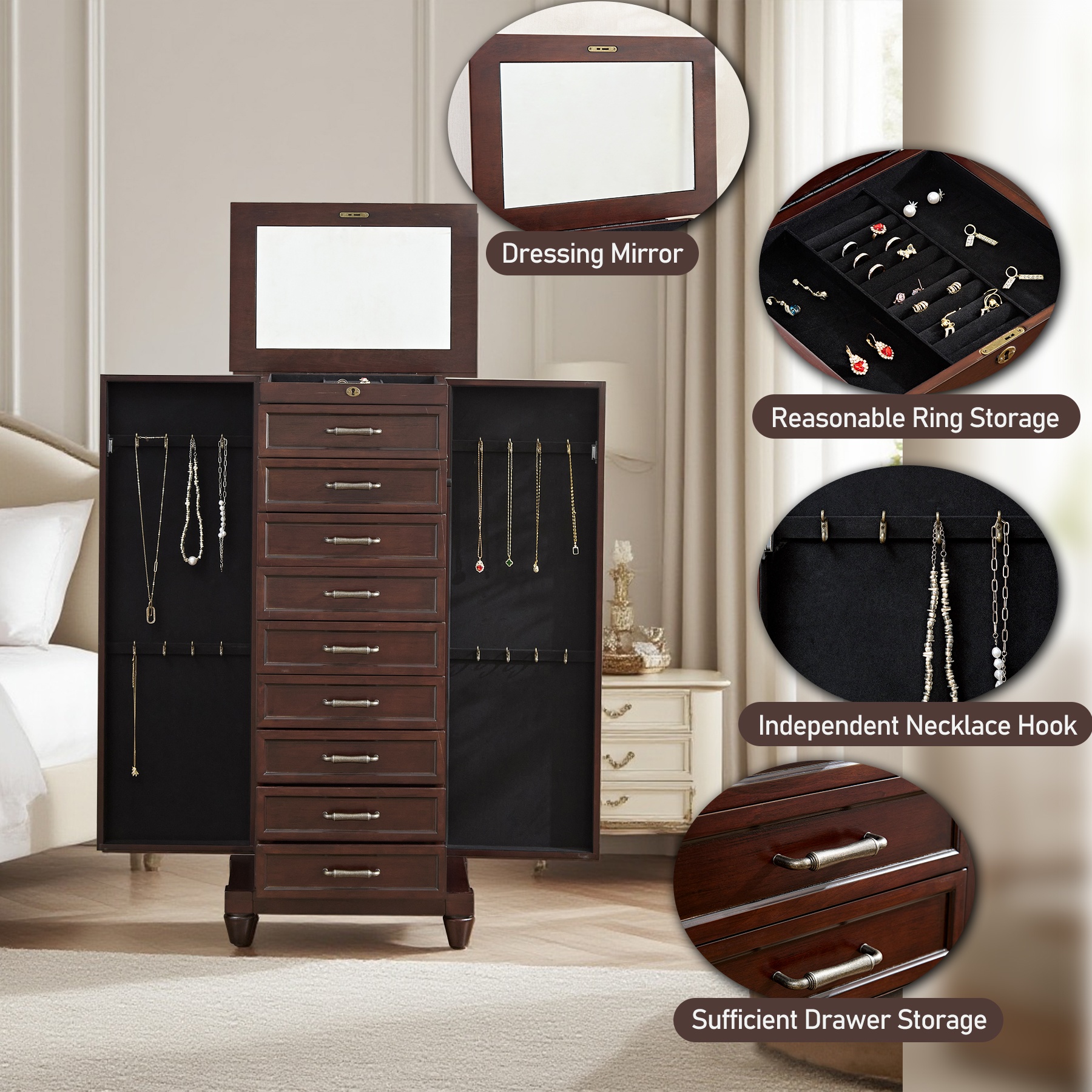 提供充足的珠宝和配饰存储空间
