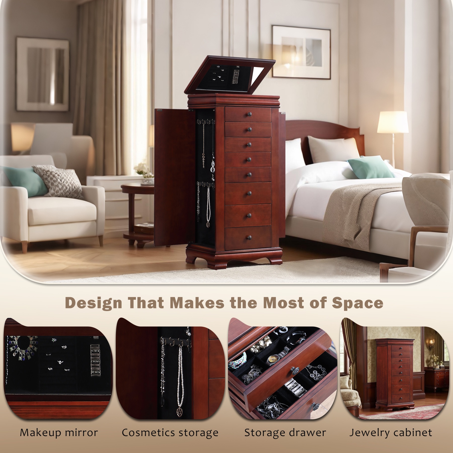 提供充足的珠宝和配饰存储空间